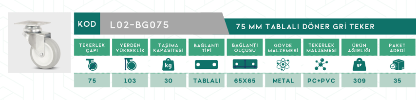 TABLALI BİLYALI 75 MM GRİ TEKERLEK L02-BG075