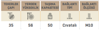 FRENLİ,CİVATALI BİLYALI 35 MM TPE TURUNCU TEKERLEK